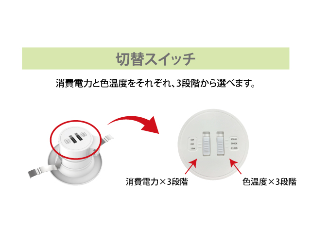 切替機能付ダウンライト型LED照明 0905