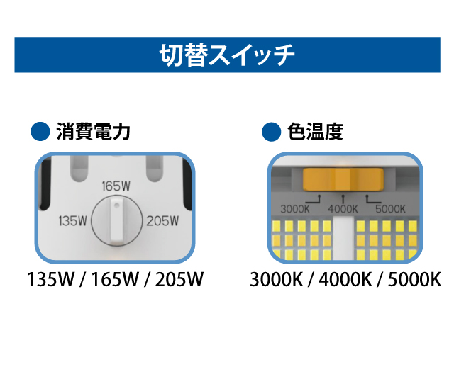 色温度   : 3,000 K / 4,000 K / 5,000 K