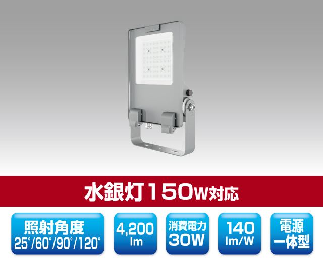 看板向けLED投光器 1301 最終更新日時 : ミヤデン LED投光器 品番:YRS30W-SBPII-Z 製品仕様 SB-PII series ● N:昼白色 YRS30W-SBPII-Z/N 消費電力 : 30 W入力電圧 : AC 100 ~ 240 Vサイズ : 344 × 226 × 81 mm質量 : 2.3 kg設計寿命 : 50,000 h色温度 : ●N 5,000K演色性 : Ra80使用温度 : -40 ~ 50°C保護等級 : IP66配光角度 : 25° / 60° / 90° / 120°全光束参考値: ●N 4,200 lmフロントカバー: 耐衝撃性保護ガラス(IK10)電源 : 一体型製品保証 : 5 年工事保証 : 6 ヶ月 製品仕様書 株式会社ユアーズ・トレード「製品情報」、https:www.yrstrade.com/prodacts、(参照 2025-11)