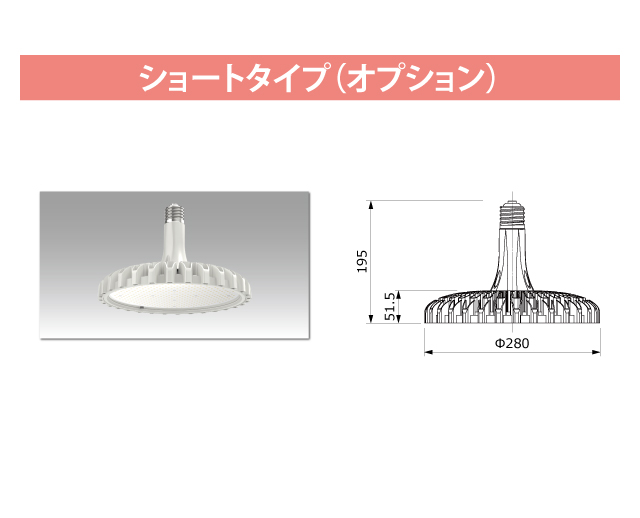 高天井用LED照明 1115 最終更新日時 : ミヤデン 高天井用LED照明 品番:YRS180W-HB180-OD-Y 製品仕様 HB180-OD series ● N:昼白色 YRS180W-HB180-OD-Y/N 消費電力 : 180 W入力電圧 : AC 100 ~ 240 V対応口金 : E39サイズ : φ 280 × 261.5 mm質量 : 1.8 kg設計寿命 : 60,000 h色温度 : ●N 5,000K演色性 : Ra75使用温度 : -40 ~ 50°C保護等級 : IP65(口金部分除く)照射角度 : 60° / 90° / 120°全光束参考値: ●N 30,600 lm製品保証 : 5 年 製品仕様書 株式会社ユアーズ・トレード「製品情報」、https:www.yrstrade.com/prodacts、(参照 2025-11)
