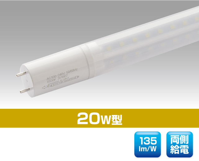 20W蛍光灯型4面発光 0502 最終更新日時 : ミヤデン 直管型LED照明 品番:YRS9WT-H 製品仕様 EL series ● D:昼光色 YRS9WT-H(在庫限り) 消費電力 : 9 W入力電圧 : AC 90 ~ 240 V対応口金 : G13サイズ : φ 26 × 580 mm質量 : 210 g設計寿命 : 40,000 h色温度 : 6,000K演色性 : Ra80使用温度 : -20 ~ 60°C保護等級 : IP65全光束参考値: 1,215 lm ± 5 %カバータイプ: 乳白色製品保証 : 3 年 製品仕様書 株式会社ユアーズ・トレード「製品情報」、https:www.yrstrade.com/prodacts、(参照 2025-11)